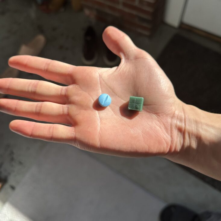 On top of that, the texture felt chalky, took awhile to dissolve, and left behind that infamous blue tongue situation, despite being a sublingual instead of a chew. Not exactly subtle.